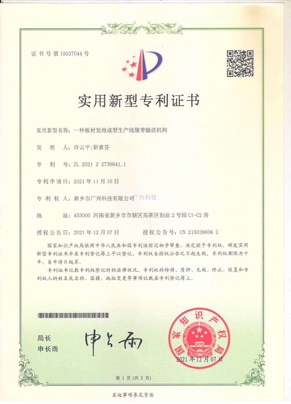 實用新型專利證書